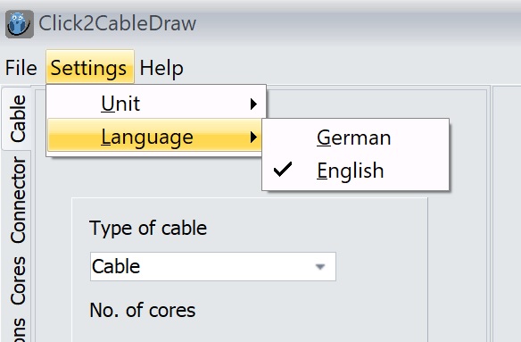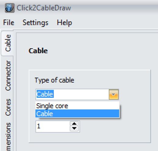 Open Click2CableDraw -> Click on the Cable tab -> Select Cable or Single core in the Type of Cable field.