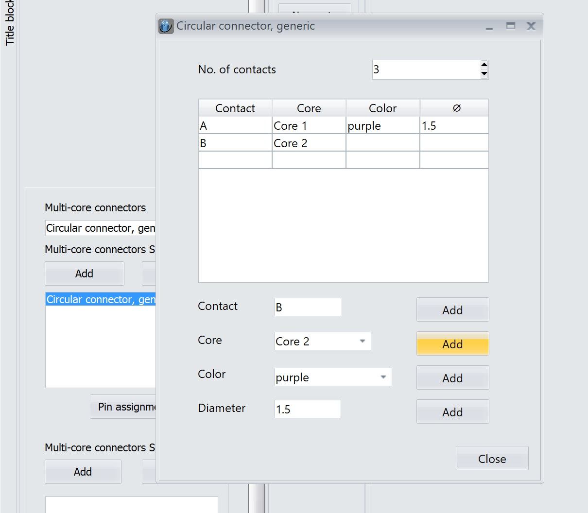 You now have the option of assigning a core to each contact of the multi-core connector.