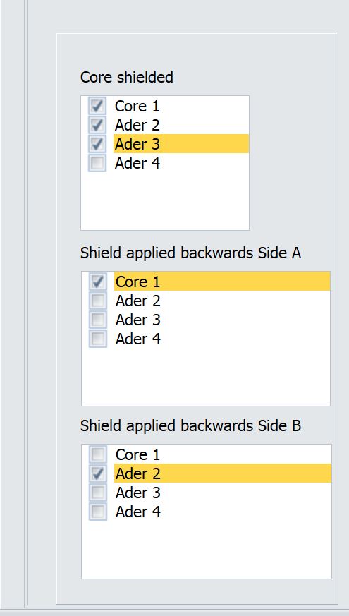 Cores can be both shielded and unshielded. You can now check which cores are shielded. For cores that are shielded, the shield can be applied backwards to the core. You can also check this box here.