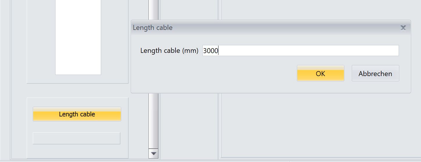 At the bottom you also have the option of entering the length of the cable. To do this, click on Length cable and enter the desired length in the window that opens. Finally, click OK.