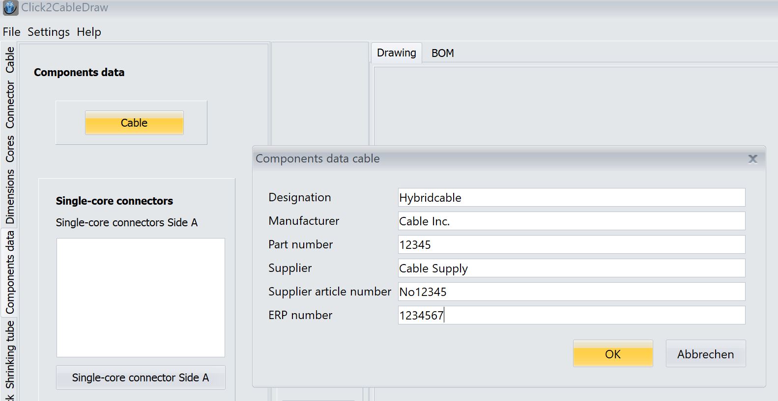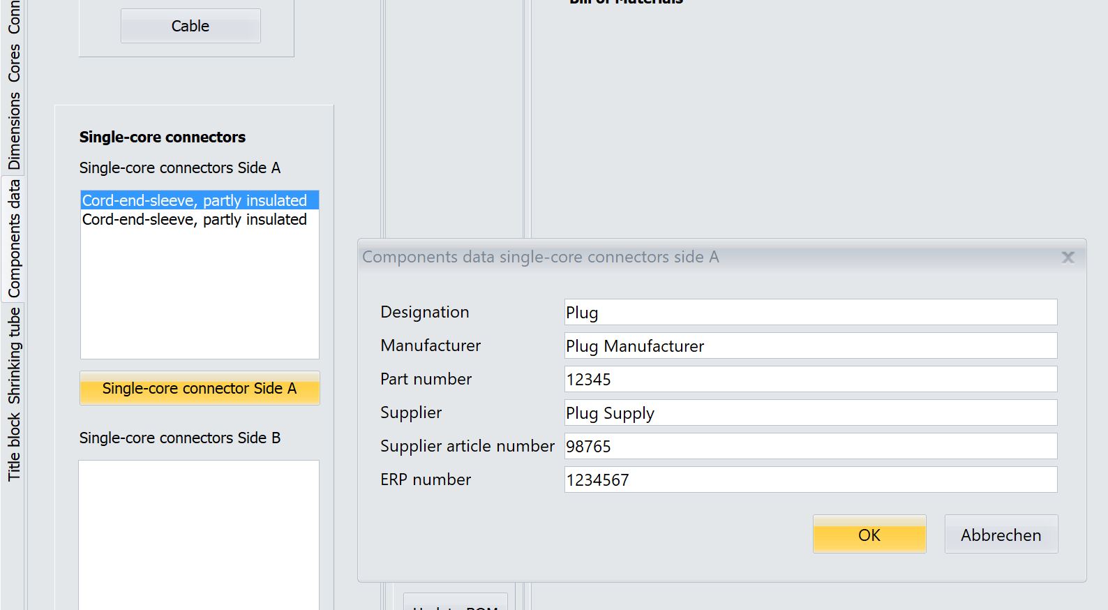 If you want to enter data for the connectors, select the desired connector and click the button below the field - you can now enter all the data for the connector in the window that opens.