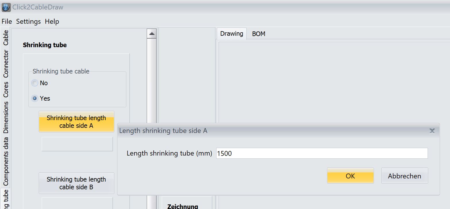 Open Click2CableDraw -> click on the Shrinking tube tab.