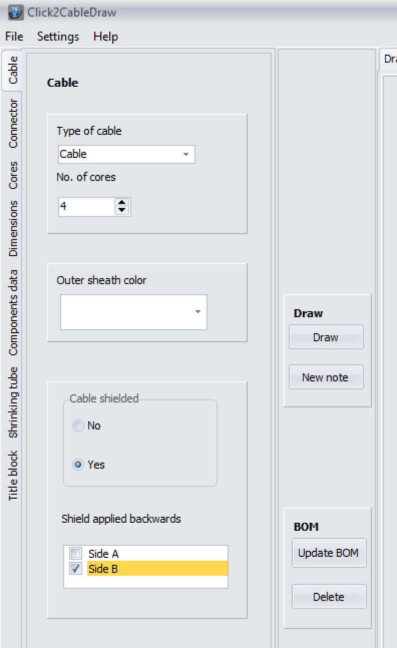 Now you can also specify whether your cable is shielded or not. If you select Yes, you also have the option of deciding on which side the shield should be applied backwards