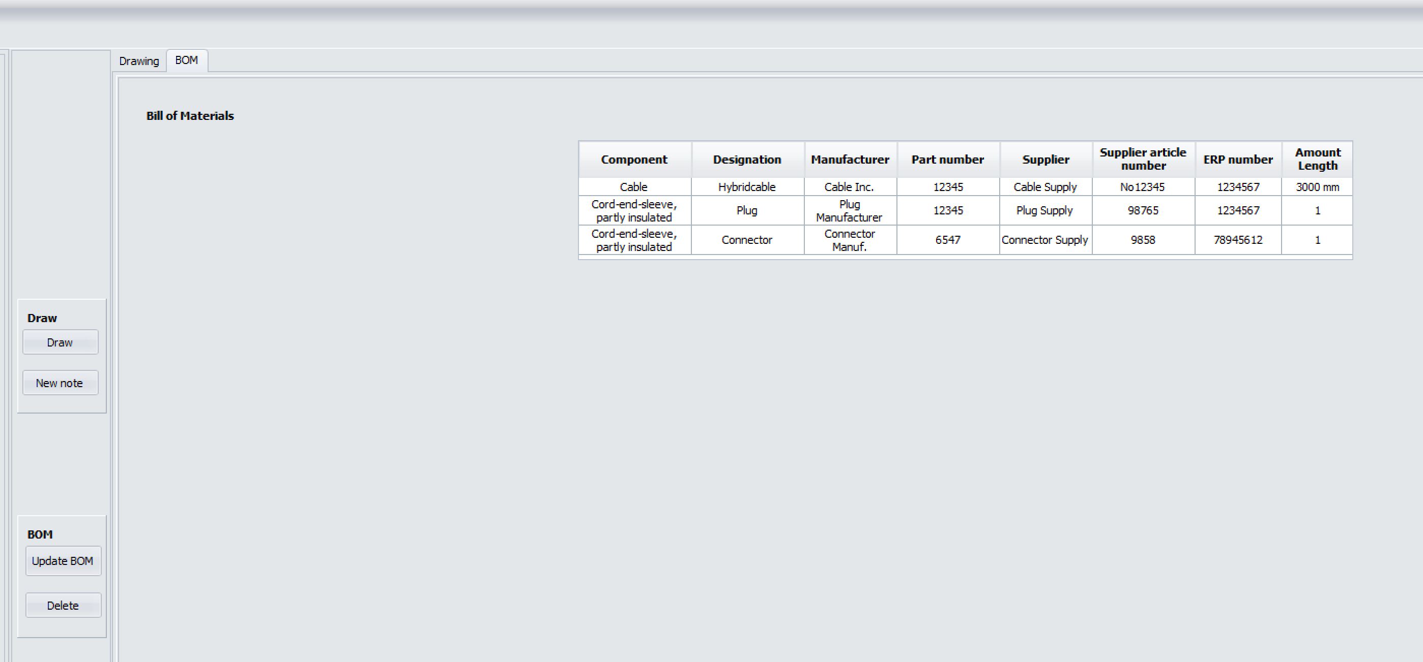 Component data must first be entered. Click on the BOM tab -> Update BOM. The BOM is now updated.